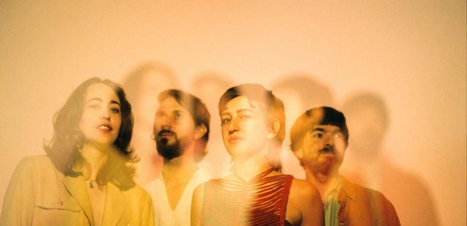 Eine Gruppe von Musikern posiert auf einem Sofa. Sie zeigen unterschiedliche Outfits und halten Instrumente in der Hand. | © Jazzit