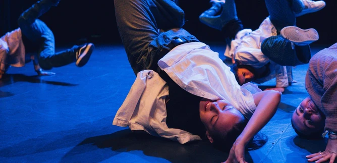 Zwei Tänzerinnen in dunkler Kleidung stehen in einem Raum und scheinen eine enge Interaktion zu haben. Der Hintergrund ist schlicht und sorgt für eine konzentrierte Atmosphäre. | © Dušana Baltic