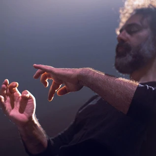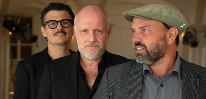 Ein Mann sitzt auf einer Holzbank unter einem Baum. Er trägt einen dunklen Anzug und ein rotes Hemd, während er nachdenklich in die Kamera blickt. | © Stephan Minx